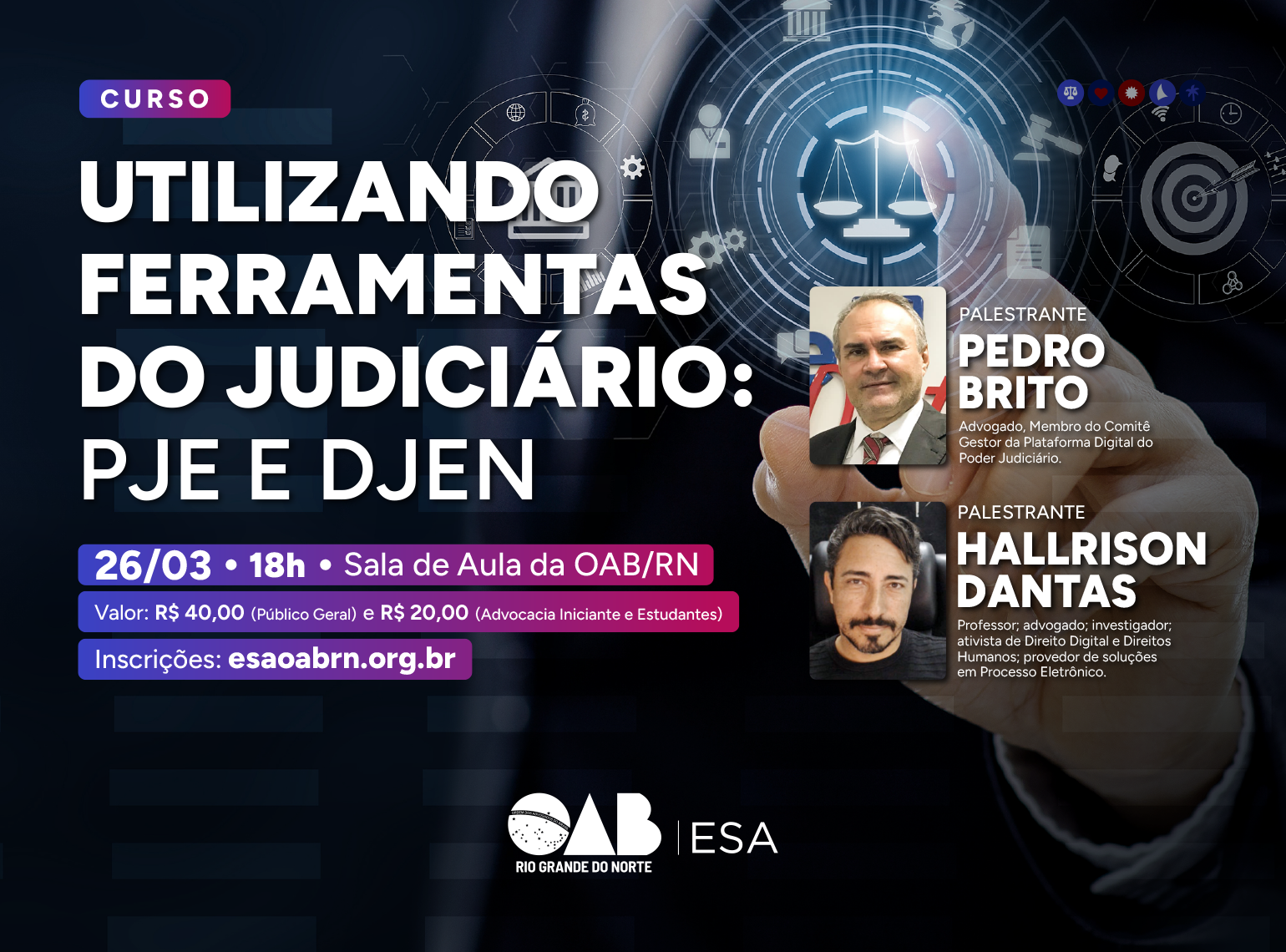 OAB/RN oferece curso sobre as ferramentas PJe e DJEN no dia 26 de março