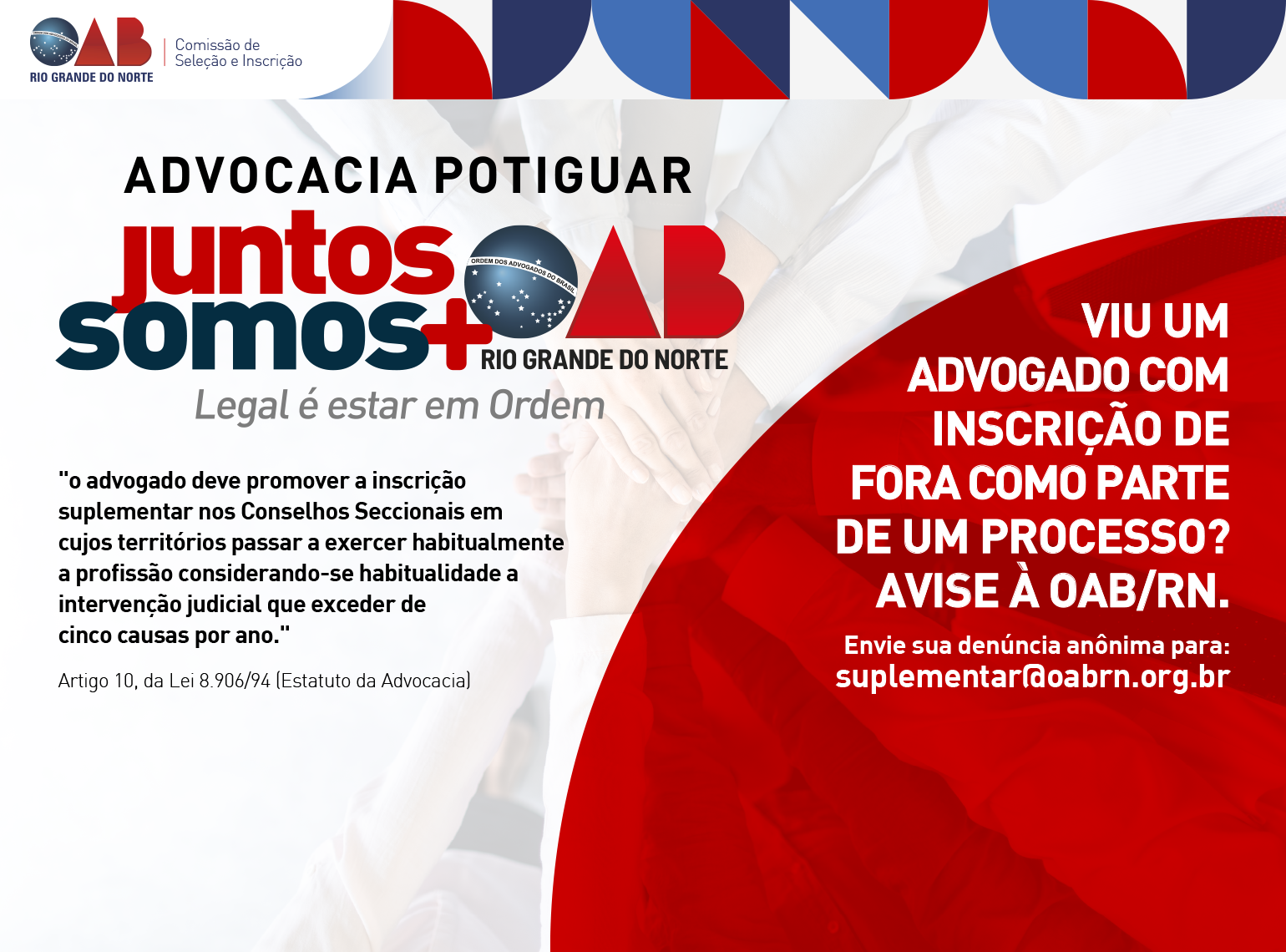 OAB/RN lança campanha para mapear advogados de outras seccionais que atuam no RN